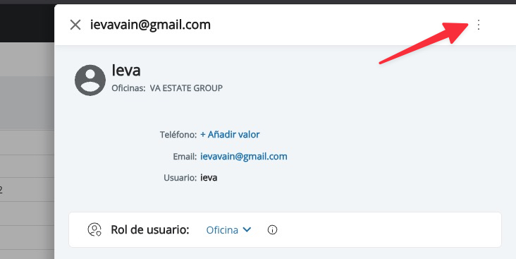 Una vez en el listado de usuarios, haz clic en el usuario que quieras editar y, en la ventana lateral, pulsa sobre los tres puntos del menú.